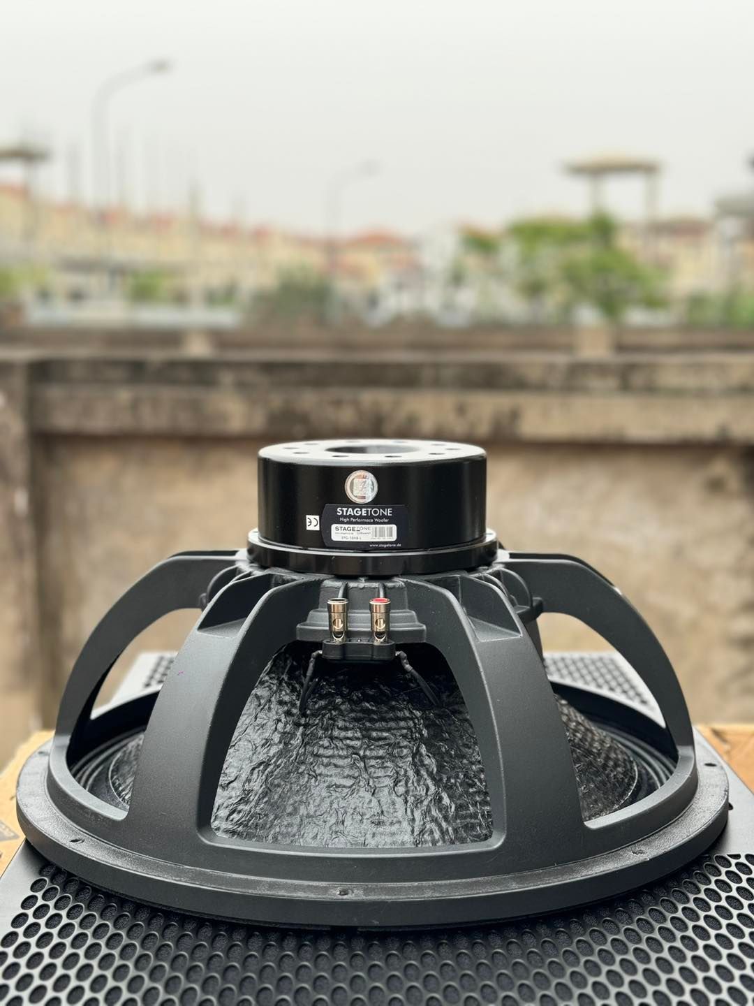 Lưới thép dày bảo vệ tối đa cho 2 củ loa 18 inch.